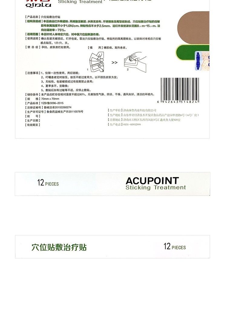 【主要結(jié)構(gòu)】本品由遠紅外陶瓷粉,丙烯酸壓敏膠,水刺無紡布,不銹鋼珠及離型紙制成。穴位貼敷治療貼的壓敏膠布剝離度不小于1.0N/cm,持粘性應(yīng)不大于2.5mm。遠紅外發(fā)射波長范圍8μm-15μm,法向比輻射率≥75%。