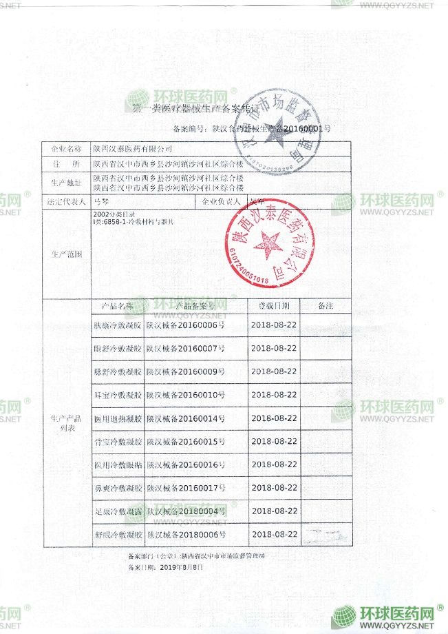 - 第一類醫(yī)療器械生產(chǎn)備案憑證