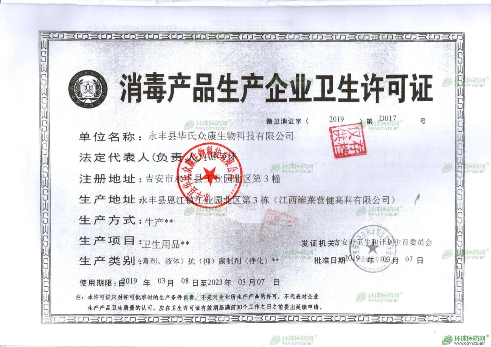 - 消毒產(chǎn)品生產(chǎn)企業(yè)衛(wèi)生許可證