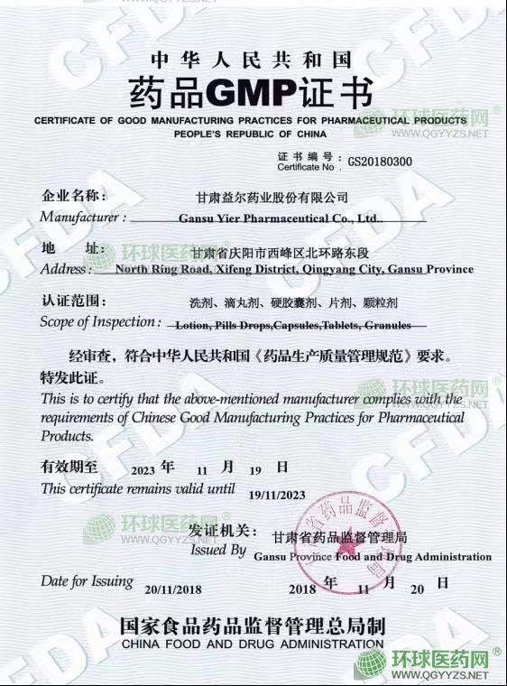 發(fā)證機(jī)關(guān): 甘肅省藥品監(jiān)督管理局