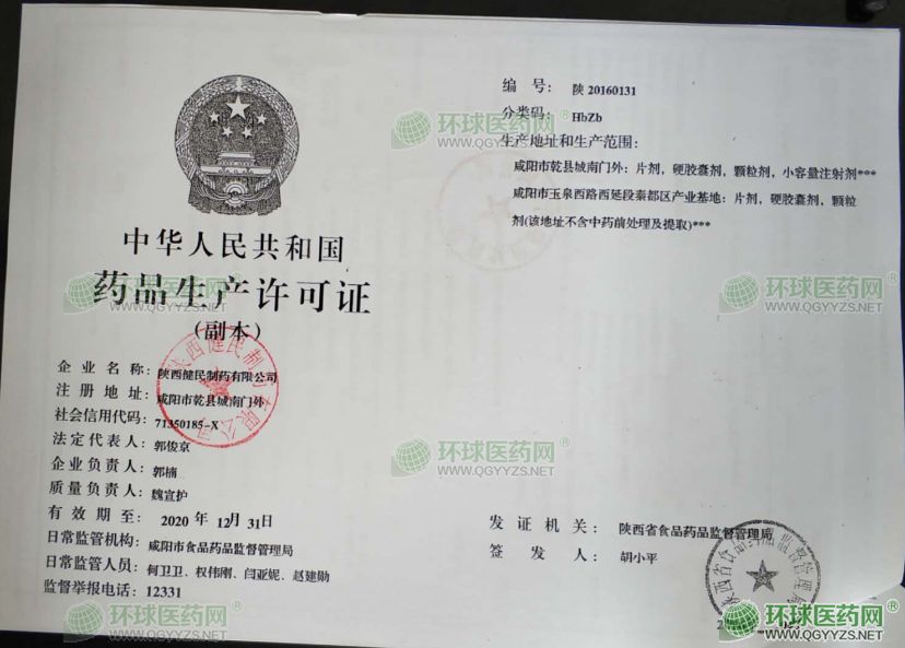 發(fā)證機(jī)關(guān): 陜西省藥品監(jiān)督管理局