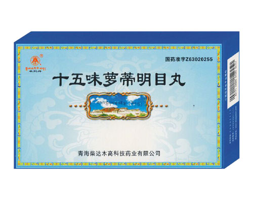 十五味蘿蒂明目丸主要成分:藏蘿蒂、寒水石(奶制)、鐵屑(訶子制)、金錢(qián)白花蛇、綠絨蒿、藏茴香、石灰華、紅花、渣馴膏、甘草、訶子、余甘子(去核)、丁香、代赭石、毛訶子。