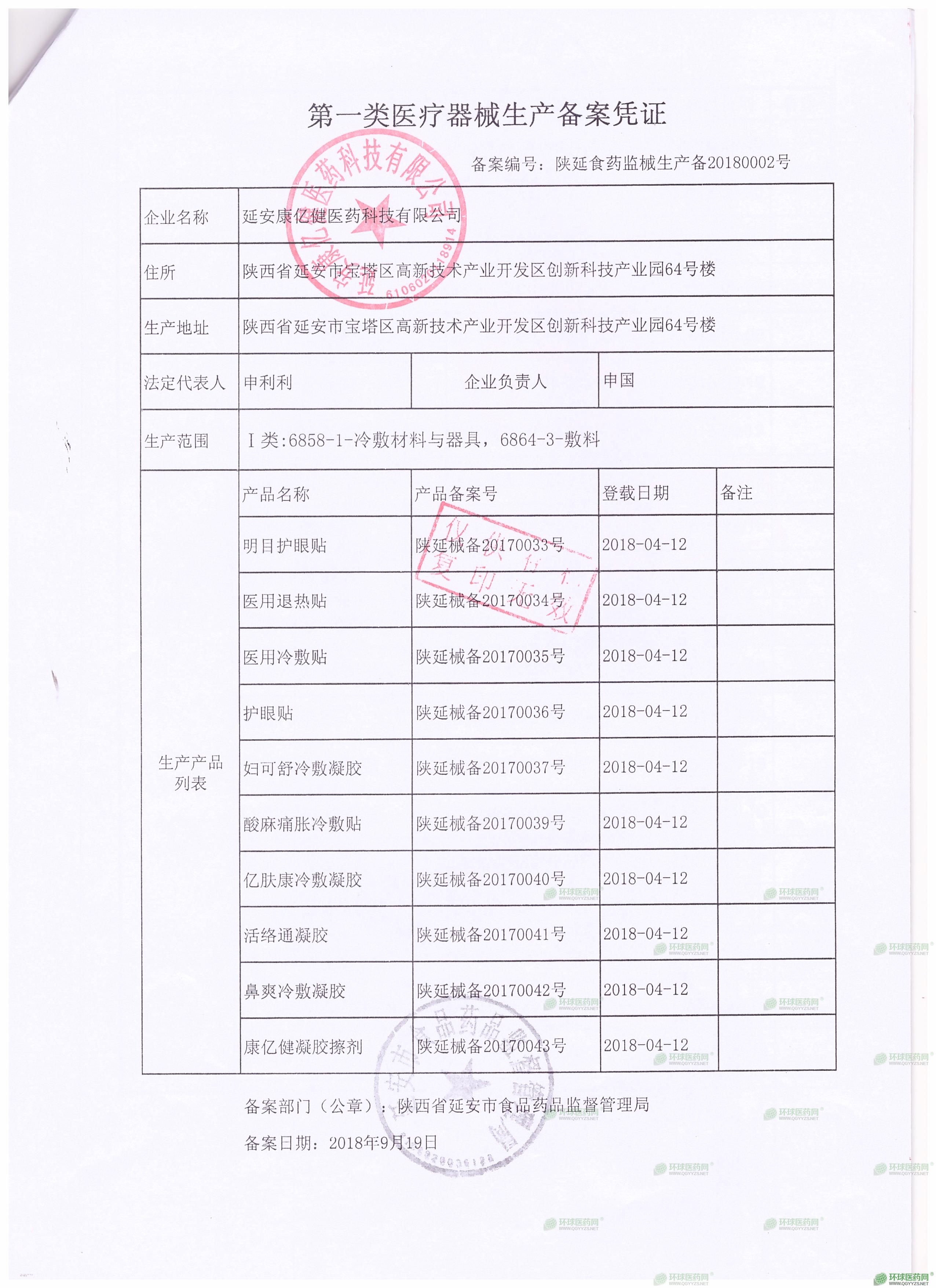 - 第一類醫(yī)療器械生產(chǎn)備案憑證