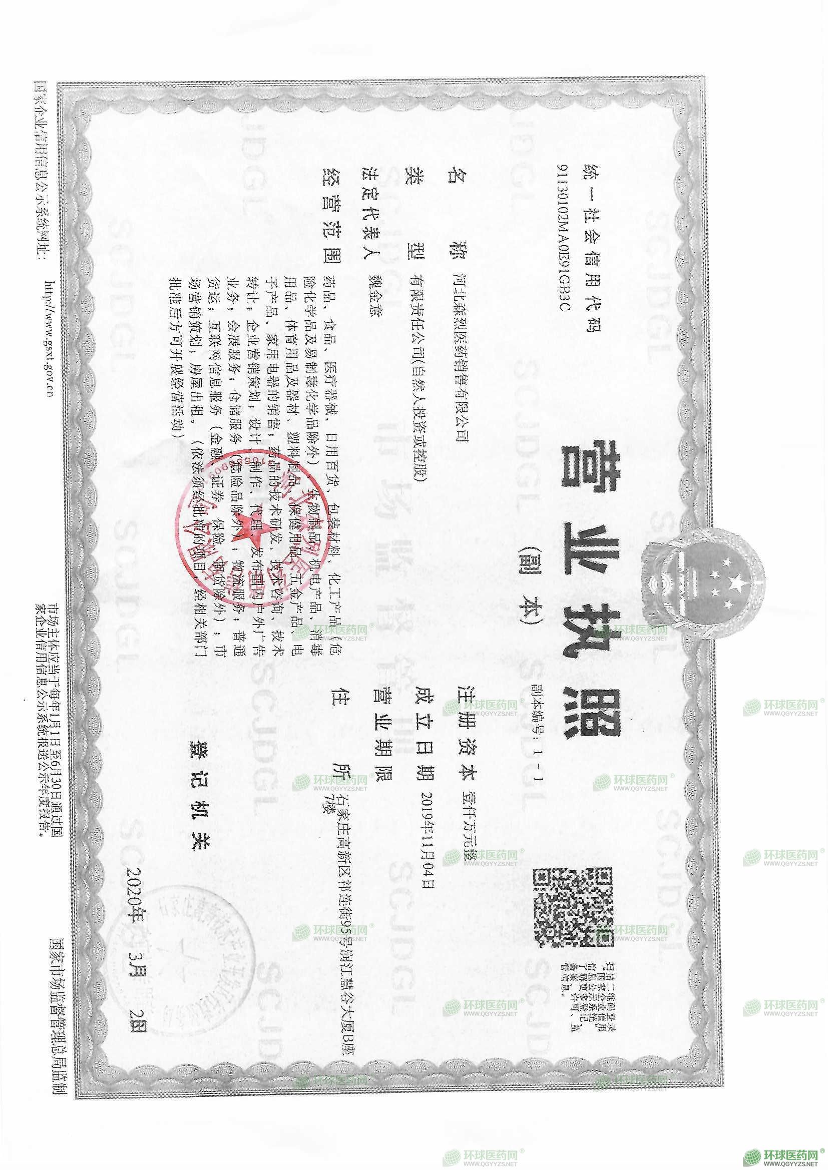 河北森烈醫(yī)藥銷售有限公司成立于2019年11月,注冊(cè)資金1000萬,經(jīng)營方式為批發(fā),經(jīng)營范圍是:中成藥、化學(xué)原料藥及其制劑、抗生素原料藥及其制劑、生物制品、生化藥品。公司注冊(cè)地址為:河北省石家莊市高新區(qū)祁連街95號(hào)潤江慧谷大廈B座7樓,總面積為:1143.7平方米,現(xiàn)有員工20人,其中質(zhì)量管理人數(shù)4人,執(zhí)業(yè)藥師2人。倉庫地址:石家莊高新區(qū)太行大街759號(hào)(委托石家莊冀德科健醫(yī)藥科技有限公司倉庫)總面積10070平方米,陰涼庫面積6300平方米,常溫庫面積3770平方米,冷庫570平方米,冷藏車1輛,保溫箱28個(gè)。