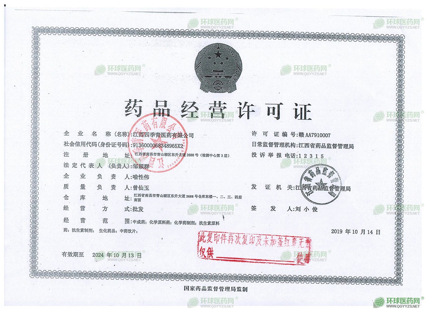 江西四季青醫(yī)藥有限公司成立于2009年02月26日,注冊地位于江西省南昌市青山湖區(qū)東升大道2688號,法人代表為鄒穎群。經(jīng)營范圍包括中成藥、化學(xué)原料藥、化學(xué)藥制劑、抗生素原料藥、抗生素制劑、生化藥品、中藥飲片的批發(fā);經(jīng)營保健食品、預(yù)包裝食品、乳制品(含嬰幼兒配方乳粉);日用品、化妝品、衛(wèi)生用品批發(fā)零售、消毒產(chǎn)品批發(fā)與零售;紡織用品、紡織原料批發(fā)零售;化工產(chǎn)品、化工原料批發(fā)零售(危險(xiǎn)化學(xué)品除外);國內(nèi)貿(mào)易;承辦展覽展示;會議與展覽展示服務(wù);市場調(diào)研;技術(shù)開發(fā)與推廣;技術(shù)交流與咨詢服務(wù);技術(shù)轉(zhuǎn)讓與銷售;醫(yī)藥技術(shù)研究;企業(yè)管理咨詢與服務(wù);醫(yī)療器械批發(fā)零售(范圍詳見《醫(yī)療器械經(jīng)營許可證》)。(依法須經(jīng)批準(zhǔn)的項(xiàng)目,經(jīng)相關(guān)部門批準(zhǔn)后方可開展經(jīng)營活動(dòng))