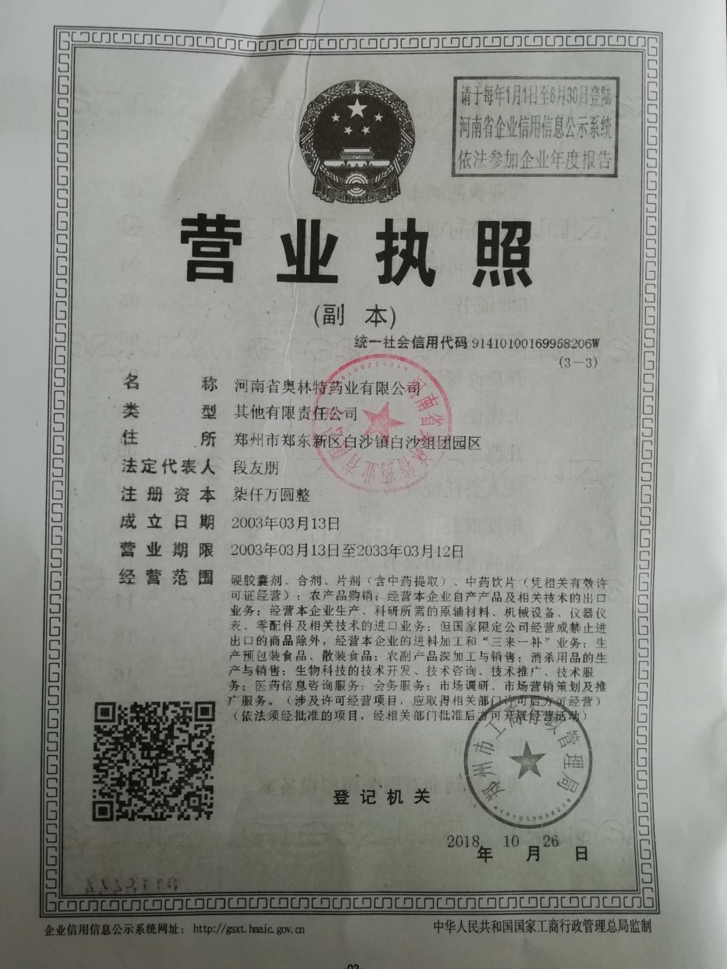 河南省奧林特藥業(yè)有限公司成立于2003年03月13日,注冊(cè)地位于鄭州市鄭東新區(qū)白沙鎮(zhèn)白沙組團(tuán)園區(qū),法定代表人為段友朋。經(jīng)營(yíng)范圍包括硬膠囊劑、合劑、片劑(含中藥提。、中藥飲片(憑相關(guān)有效許可證經(jīng)營(yíng));農(nóng)產(chǎn)品購(gòu)銷(xiāo);經(jīng)營(yíng)本企業(yè)自產(chǎn)產(chǎn)品及相關(guān)技術(shù)的出口業(yè)務(wù);經(jīng)營(yíng)本企業(yè)生產(chǎn)、科研所需的原輔材料、機(jī)械設(shè)備、儀器儀表、零配件及相關(guān)技術(shù)的進(jìn)口業(yè)務(wù);但國(guó)家限定公司經(jīng)營(yíng)或禁止進(jìn)出口的商品除外,經(jīng)營(yíng)本企業(yè)的進(jìn)料加工和“三來(lái)一補(bǔ)”業(yè)務(wù);生產(chǎn)預(yù)包裝食品、散裝食品;農(nóng)副產(chǎn)品深加工與銷(xiāo)售;消殺用品的生產(chǎn)與銷(xiāo)售;生物科技的技術(shù)開(kāi)發(fā)、技術(shù)咨詢、技術(shù)推廣、技術(shù)服務(wù);醫(yī)藥信息咨詢服務(wù);會(huì)務(wù)服務(wù);市場(chǎng)調(diào)研、市場(chǎng)營(yíng)銷(xiāo)策劃及推廣服務(wù)。(涉及許可經(jīng)營(yíng)項(xiàng)目,應(yīng)取得相關(guān)部門(mén)許可后方可經(jīng)營(yíng))