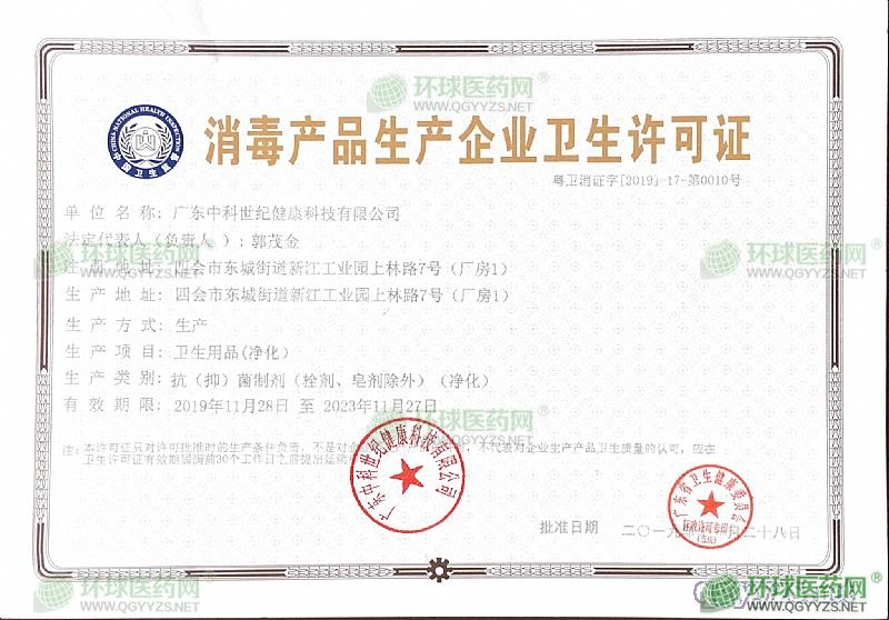 - 消毒產(chǎn)品生產(chǎn)企業(yè)衛(wèi)生許可證