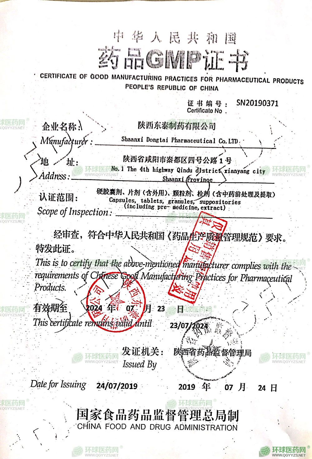 - GMP認(rèn)證證書