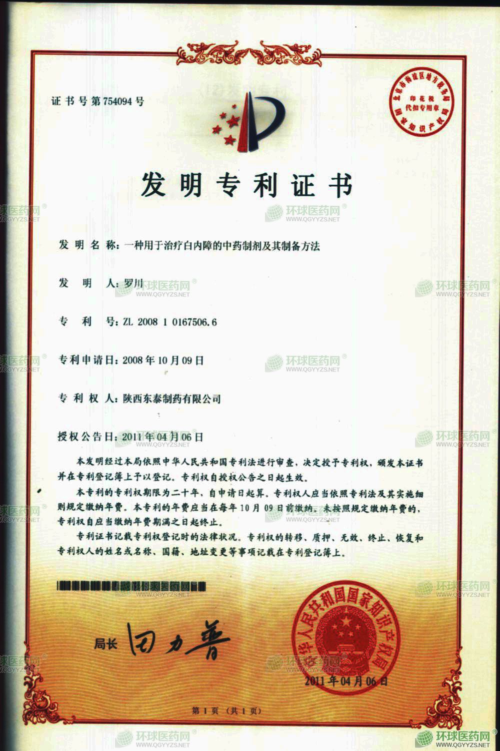 - 發(fā)明專利證書