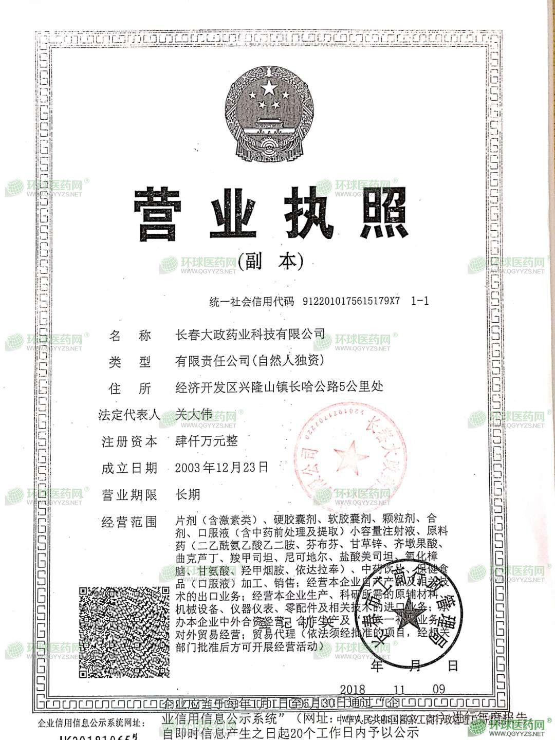 長(zhǎng)春大政藥業(yè)科技有限公司