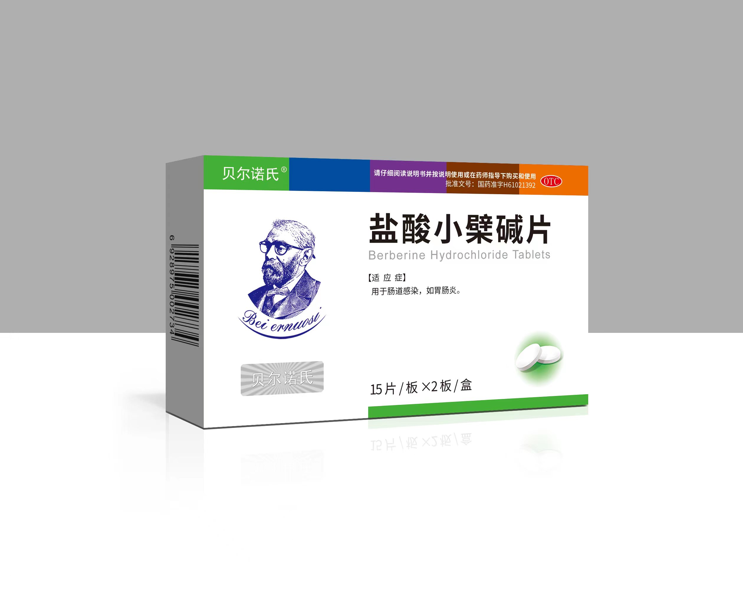 主要成分:本品每片主要成份鹽酸小檗堿0.1克,輔料為:淀粉、羧甲淀粉鈉、硬脂酸鎂、滑石粉、蔗糖、檸檬黃(色素)。