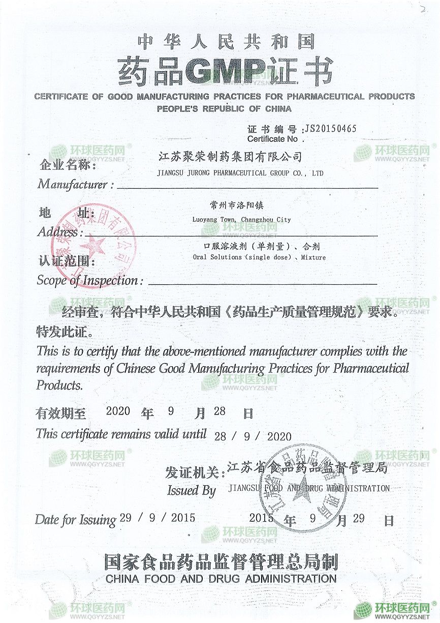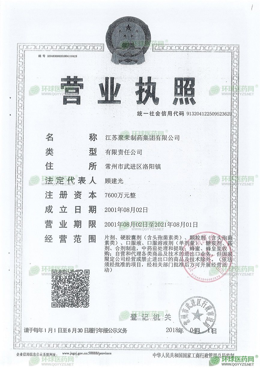 江蘇聚榮制藥集團有限公司創(chuàng)建于1983年,是一家以藥品生產、銷售為主的現代化企業(yè)集團。公司地處長三角經濟圈中心的常州市洛陽鎮(zhèn),交通便捷、環(huán)境優(yōu)美。公司占地面積96000平方米,建筑面積63000平方米,注冊資本7600萬元,固定資產2.8億元。近年來相繼成立了集團旗下四個支公司,2018年集團實現總產值28億元,**3.3億元。集團公司現有職工1000名,專業(yè)技術人員98名,其中高級職稱38名。