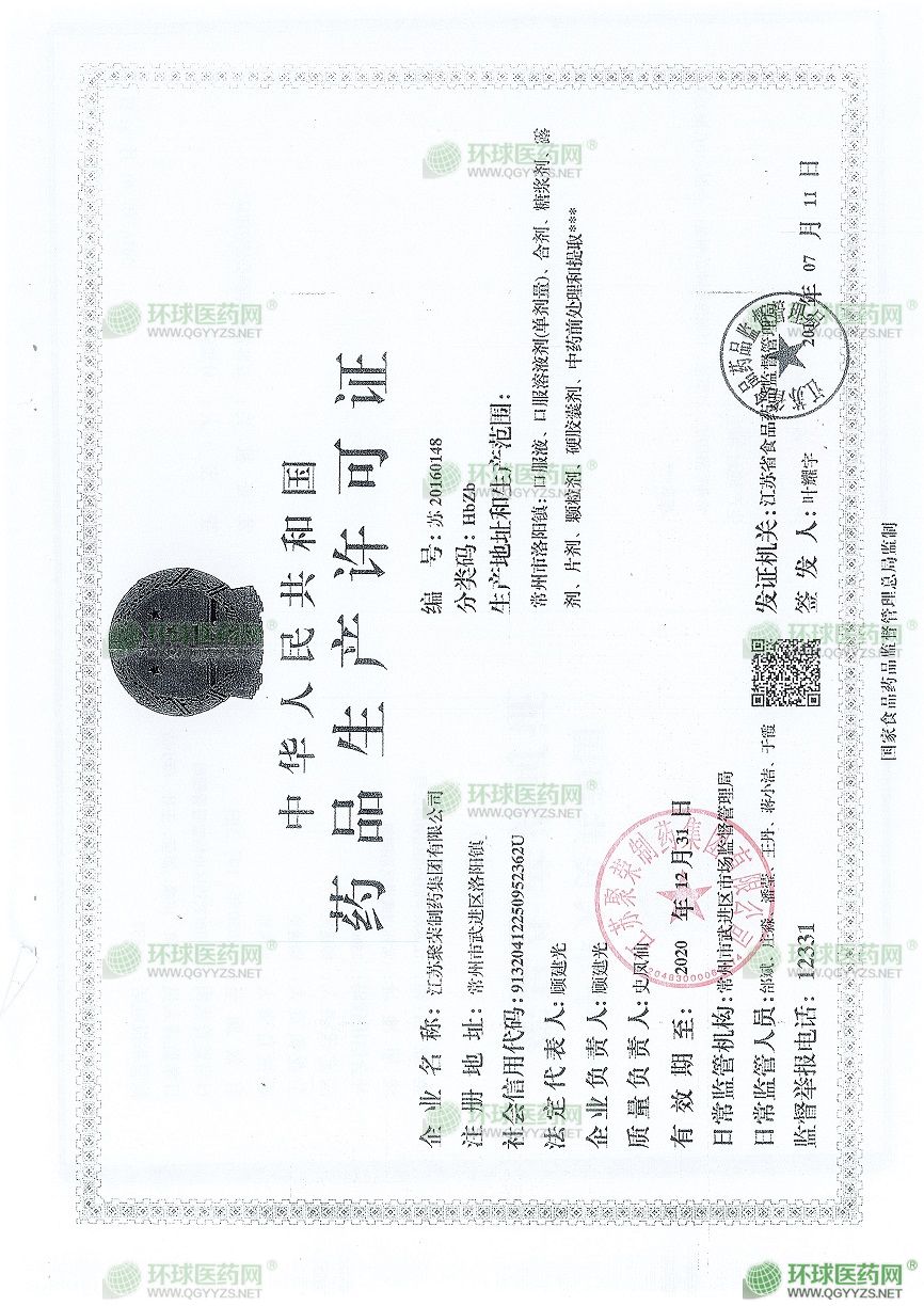公司擁有多條先進的口服液、膠囊劑、片劑生產線,公司質量檢測設備完備,擁有國內外先進的檢驗儀器設備。1991年以來公司連續(xù)被評為省重合同守信用AAA級企業(yè)、常州市明星企業(yè),“聚榮”商標被評為江蘇省商標。