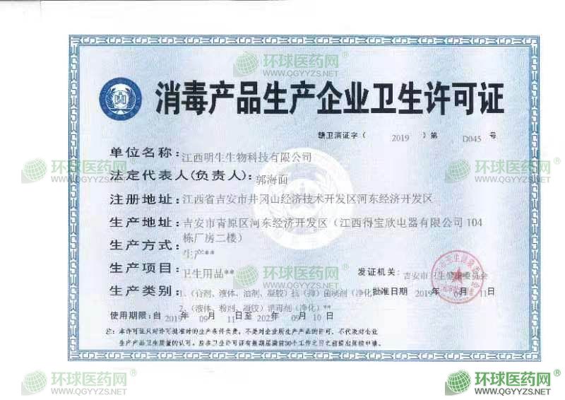 - 消毒產(chǎn)品生產(chǎn)企業(yè)衛(wèi)生許可證