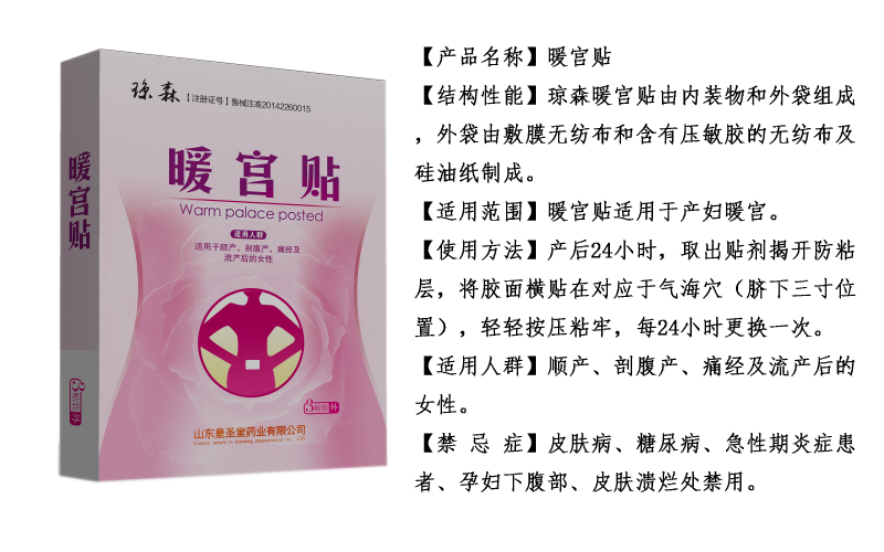 暖宮貼是臨床婦科常用的貼劑,充分根據(jù)物理治療學(xué)為基礎(chǔ),運(yùn)用中醫(yī)內(nèi)病外治理論和經(jīng)絡(luò)傳導(dǎo)治療原理,將穴位炙熱療法和遠(yuǎn)紅外物理療法相結(jié)合,通過對氣海穴的遠(yuǎn)紅外溫?zé)犰僦,通?jīng)絡(luò)、正血脈、激活子宮的活動機(jī)能,促進(jìn)血管、子宮正常收縮、加快子宮內(nèi)組織的修復(fù)生長,增強(qiáng)免疫力,防止產(chǎn)后腹痛,同時提高產(chǎn)婦自身的生理機(jī)能。產(chǎn)生對受損器官的修補(bǔ)和再生能力,具有溫經(jīng)散寒、暖宮止痛、調(diào)和氣血之作用,有效防止“月子病”是專為產(chǎn)婦、流產(chǎn)女性及月經(jīng)不調(diào)、痛經(jīng)女性研制的產(chǎn)后月子護(hù)理用品。