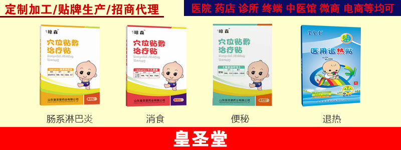 皇圣堂藥業(yè)是一家研發(fā)生產(chǎn)的大型膏藥生產(chǎn)廠家,產(chǎn)品類型多達(dá)幾十種,涉及骨科、婦科、、、化妝品、日化品等多種產(chǎn)品領(lǐng)域。小兒貼代理膏藥廠家光是小兒貼膏藥都有七種分型,包括小兒貼代理、腹瀉貼、小兒咳喘貼代理、小兒貼、貼、小兒消食貼代理、腸系淋巴炎貼,專病專治,給孩子貼心的呵護(hù)是山東皇圣堂藥業(yè)的重要理念。