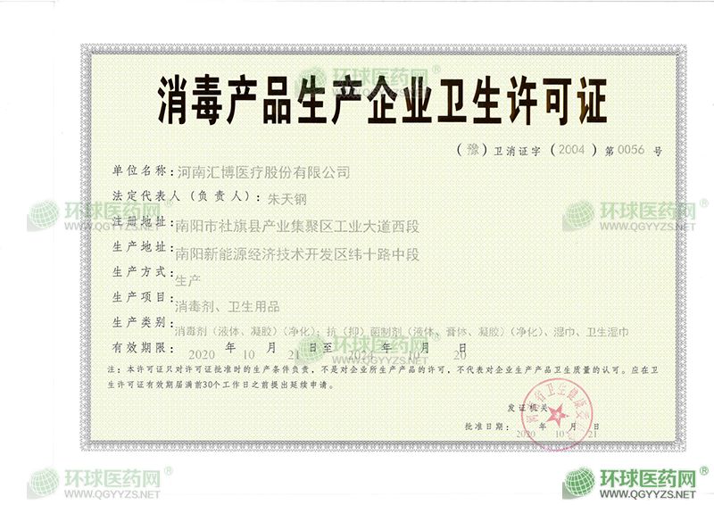 - 消毒產(chǎn)品生產(chǎn)企業(yè)衛(wèi)生許可證