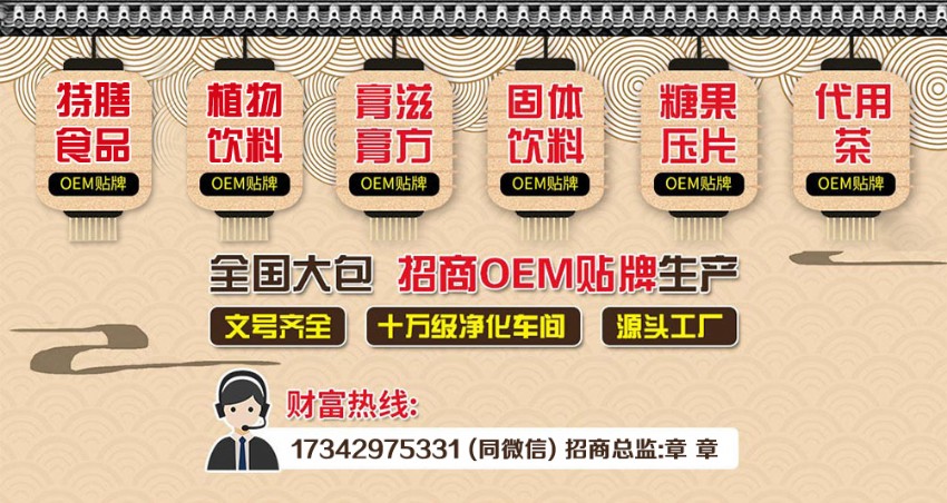 特膳食品/植物飲料/膏滋產(chǎn)品等大健康產(chǎn)品招商,嚴格控銷,嚴禁掛網(wǎng),文號齊全,可OEM貼牌代工!