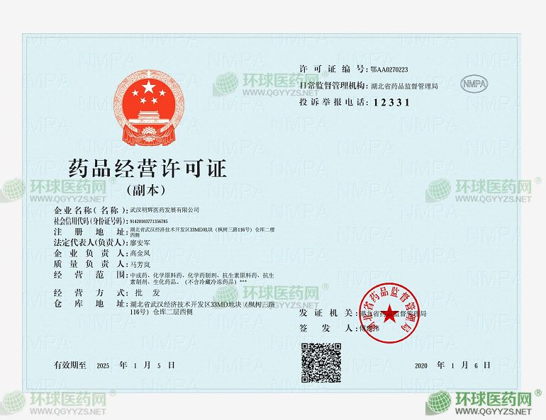 武漢明輝醫(yī)藥發(fā)展有限公司地處武漢經(jīng)濟(jì)開(kāi)發(fā)區(qū)33MD地塊(楓樹(shù)三路116號(hào)),公司于2005年在武漢市工商行政管理局江漢分局登記注冊(cè),公司注冊(cè)資金1000萬(wàn)人民幣,企業(yè)類(lèi)型是有限責(zé)任公司(自然人投資或控股)。目前的經(jīng)營(yíng)范圍是中成藥、中藥飲片、化學(xué)藥制劑、抗生素制劑、生物制品、化學(xué)原料藥、生化藥品、抗生素原料藥批發(fā)。(經(jīng)營(yíng)期限與許可證核定的期限一致)(國(guó)家有專(zhuān)項(xiàng)規(guī)定的項(xiàng)目經(jīng)審批后方可經(jīng)營(yíng))。