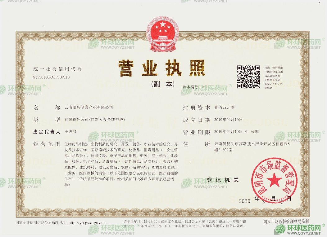 發(fā)證機關(guān): 云南省藥品監(jiān)督管理局