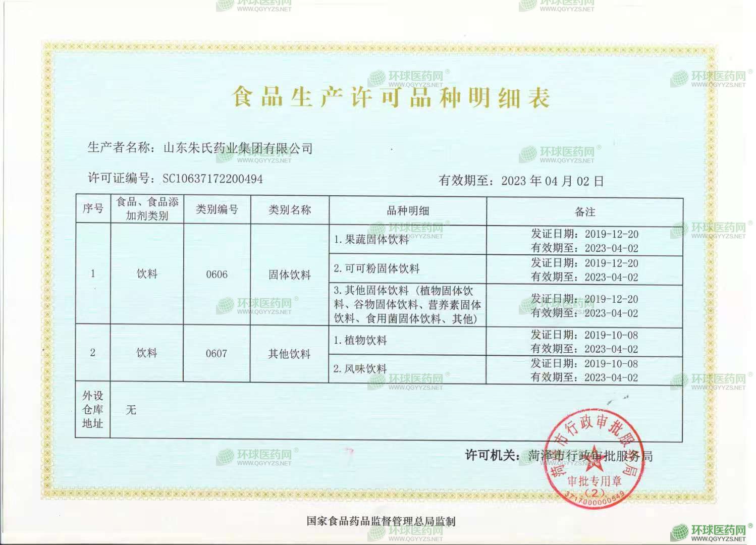 - 食品生產(chǎn)許可品種明細(xì)表