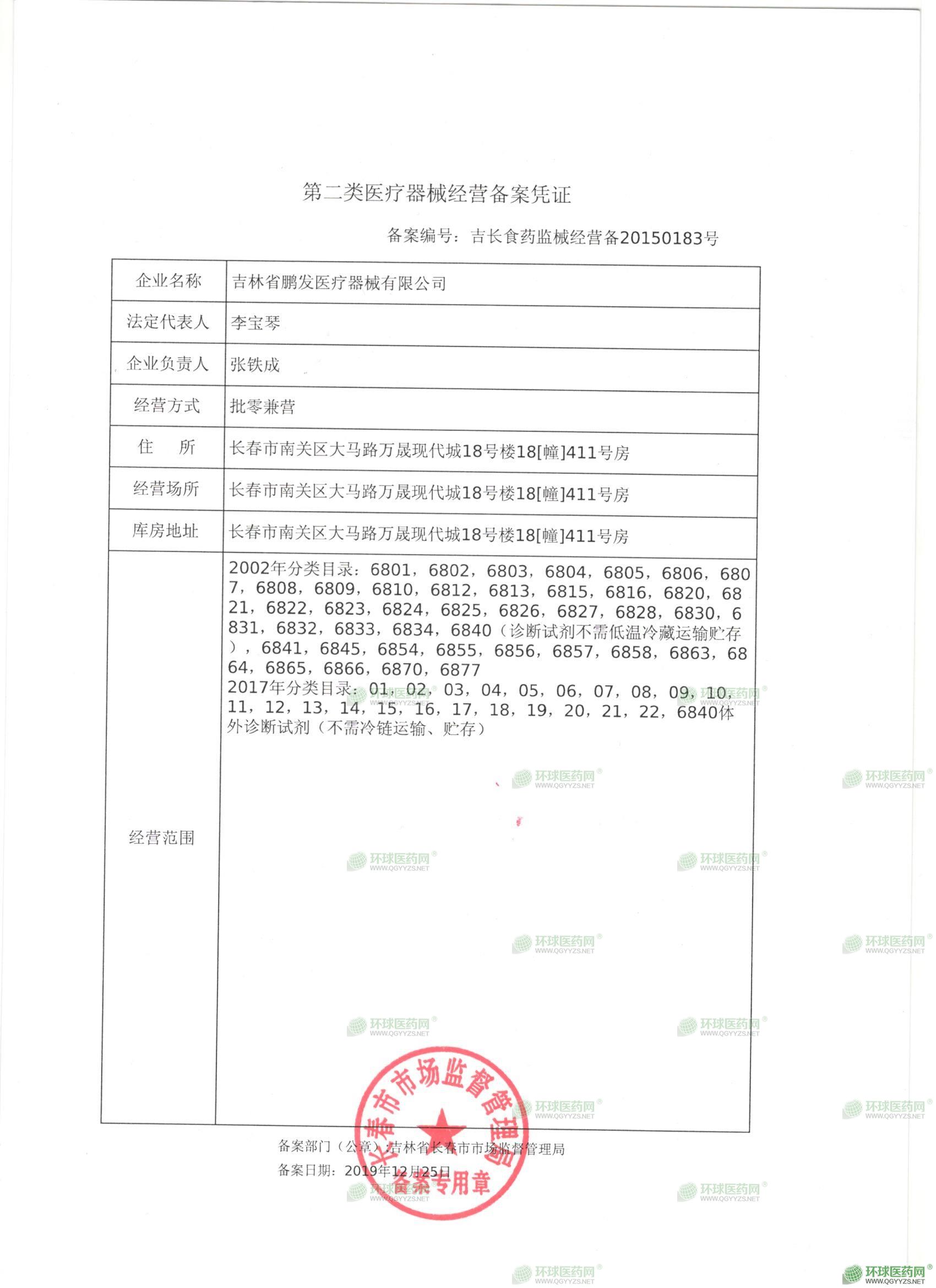 吉林省鵬發(fā)醫(yī)療器械有限公司成立于2010年06月08日,注冊地位于長春市南關(guān)區(qū)大馬路萬晟現(xiàn)代城18號樓18[幢]411號房,法定代表人為李寶琴。經(jīng)營范圍包括經(jīng)銷:醫(yī)療器械(以上經(jīng)營項目,法律、法規(guī)和國務(wù)院決定禁止的,不得經(jīng)營;許可經(jīng)營項目憑有效許可證或批準文件經(jīng)營;一般經(jīng)營項目可自主選擇經(jīng)營)