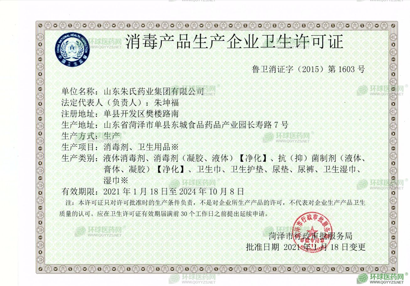 - 消毒產(chǎn)品生產(chǎn)企業(yè)衛(wèi)生許可證