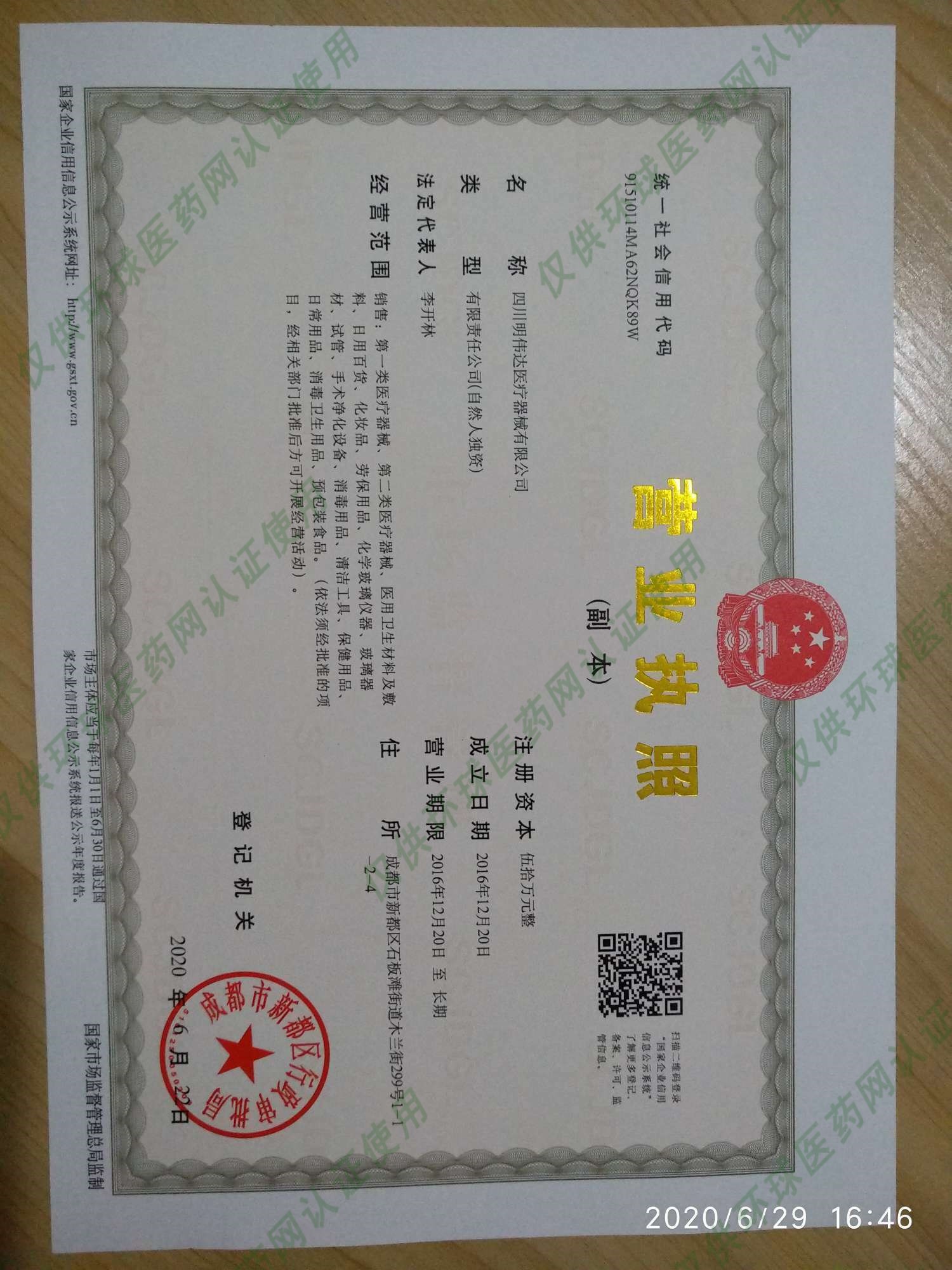 四川明偉達醫(yī)療器械有限公司成立于2016年12月20日,注冊地位于成都市新都區(qū)石板灘街道木蘭街299號1-1-2-4,法定代表人為李開林。經(jīng)營范圍包括銷售:**類醫(yī)療器械、第二類醫(yī)療器械、醫(yī)用衛(wèi)生材料及敷料、日用百貨、化妝品、勞保用品、化學(xué)玻璃儀器、玻璃器材、試管、手術(shù)凈化設(shè)備、消毒用品、清潔工具、保健用品、日常用品、消毒衛(wèi)生用品、預(yù)包裝食品。(依法須經(jīng)批準的項目,經(jīng)相關(guān)部門批準后方可開展經(jīng)營活動)。