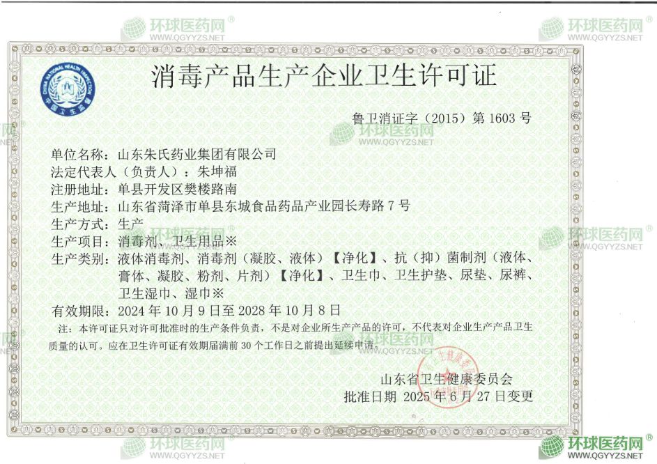 - 消毒產(chǎn)品生產(chǎn)企業(yè)衛(wèi)生許可證