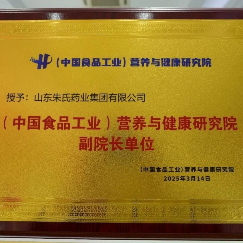 山東朱氏藥業(yè)集團榮獲“中國食品工業(yè)營養(yǎng)與健康研究院副院長單位”
