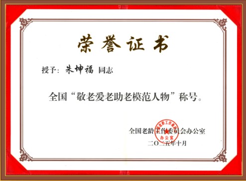 朱坤福同志榮獲 全國“敬老愛老助老模范人物”稱號!
