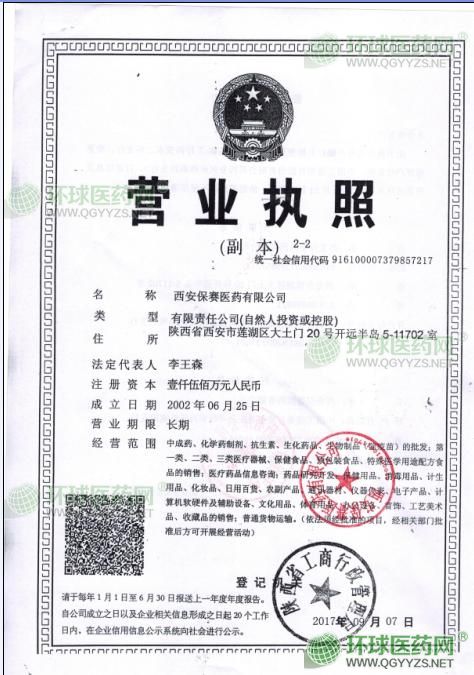 西安保賽醫(yī)藥有限公司成立于2002年6月。2016年3月改制以后,主要是一家從事中成藥、化學藥制劑、抗生素、生化藥品、醫(yī)療器械、新特藥產(chǎn)品、新的體外診斷試劑、耗材等產(chǎn)品總代理為主的專業(yè)化推廣公司,2017年已通過新版GSP認證。