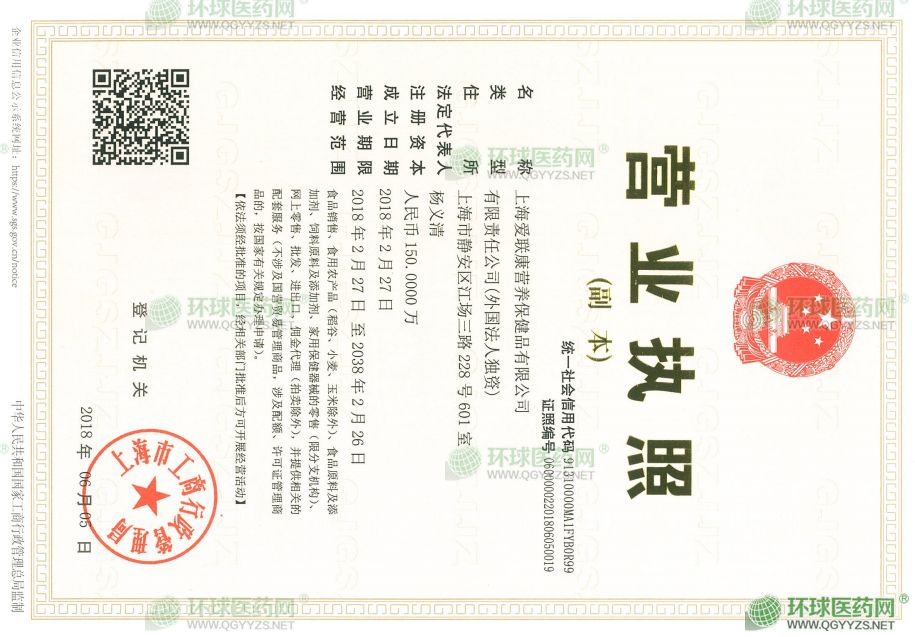 上海愛(ài)聯(lián)康營(yíng)養(yǎng)品有限公司