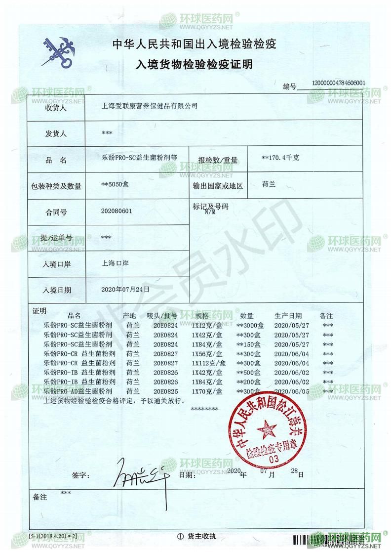 - 入境貨物檢驗(yàn)檢疫證明