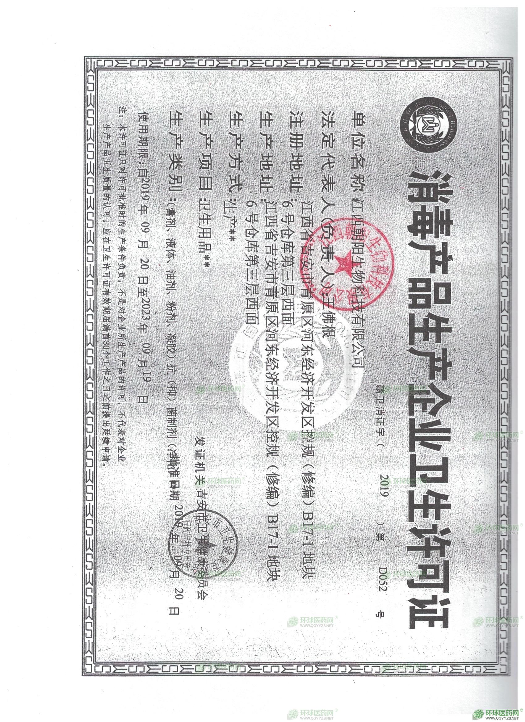 - 消毒產(chǎn)品許可證