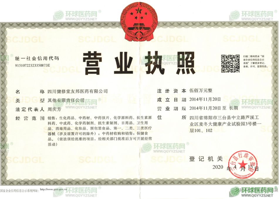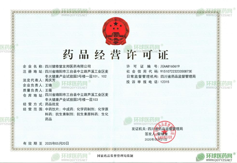 四川健修堂友邦醫(yī)藥有限公司辦公室地址位于李白的故鄉(xiāng)(綿陽),四川綿陽市三臺縣蘆溪工業(yè)集中區(qū)1棟101室、103室、104室,于2014年11月20日在三臺縣食品藥品和工商質(zhì)監(jiān)管理局注冊成立,注冊資本為100萬人民幣,在公司發(fā)展壯大的6年里,我們始終為客戶提供好的產(chǎn)品和技術(shù)支持、健全的售后服務(wù),我公司主要經(jīng)營銷售:生化藥品、中藥材、中藥飲片、化學(xué)原料藥、抗生素原料藥、中成藥、化學(xué)藥制劑、抗生素制劑、日用品、衛(wèi)生用品、消毒用品、化妝品、預(yù)包裝食品、、二類醫(yī)療器械(涉及前置許可的除外);中藥材收購和銷售。(依法須經(jīng)批準(zhǔn)的項(xiàng)目,經(jīng)相關(guān)部門批準(zhǔn)后方可開展經(jīng)營活動),我們有好的產(chǎn)品和專業(yè)的銷售和技術(shù)團(tuán)隊(duì),我公司屬于綿陽醫(yī)藥中間體公司行業(yè),如果您對我公司的產(chǎn)品服務(wù)有興趣,期待您在線留言或者來電咨詢