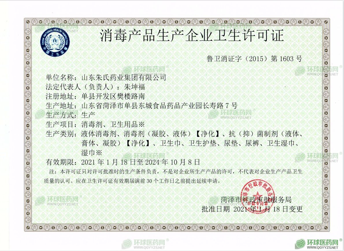 - 消毒產(chǎn)品生產(chǎn)企業(yè)衛(wèi)生許可證