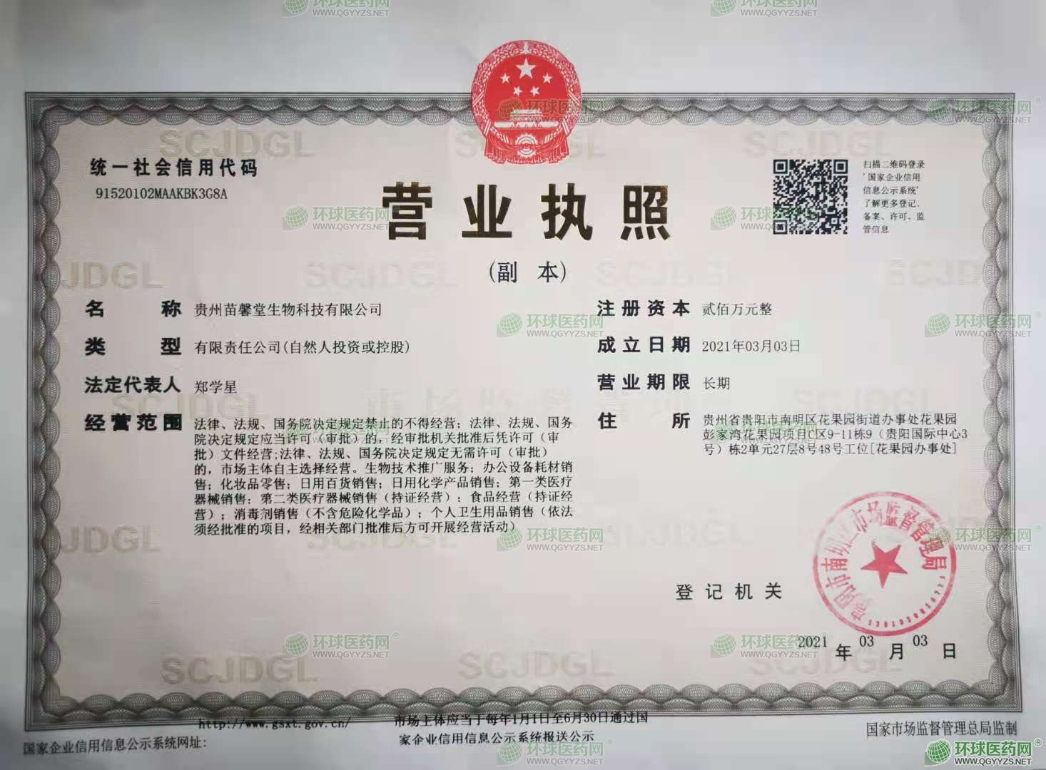 貴州苗馨堂生物科技有限公司成立于2021年03月03日,注冊地位于貴州省貴陽市南明區(qū)花果園街道辦事處花果園彭家灣花果園項目C區(qū)9-11棟9(貴陽國際中心3號)棟2單元27層8號48號工位[花果園辦事處],法定代表人為鄭學(xué)星。經(jīng)營范圍包括法律、法規(guī)、國務(wù)院決定規(guī)定禁止的不得經(jīng)營;法律、法規(guī)、國務(wù)院決定規(guī)定應(yīng)當許可(審批)的,經(jīng)審批機關(guān)批準后憑許可(審批)文件經(jīng)營;法律、法規(guī)、國務(wù)院決定規(guī)定無需許可(審批)的,市場主體自主選擇經(jīng)營。(生物技術(shù)推廣服務(wù);辦公設(shè)備耗材銷售;化妝品零售;日用百貨銷售;日用化學(xué)產(chǎn)品銷售;**類醫(yī)療器械銷售;第二類醫(yī)療器械銷售(持證經(jīng)營);食品經(jīng)營(持證經(jīng)營);消毒劑銷售(不含危險化學(xué)品);個人衛(wèi)生用品銷售(依法須經(jīng)批準的項目,經(jīng)相關(guān)部門批準后方可開展經(jīng)營活動))