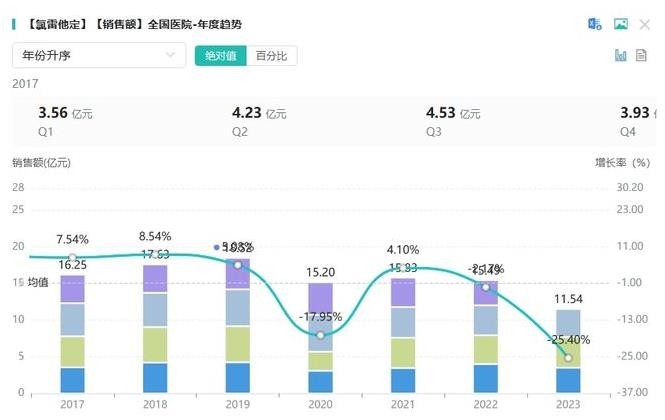 從在全國院內(nèi)市場來看,氯雷他定相關(guān)品種的銷售表現(xiàn)尤為亮眼。其總銷售峰值超18億元,顯示出強(qiáng)大的市場潛力。2023年(截至Q3),氯雷他定相關(guān)品種的銷售額已接近12億元,表明其在抗過敏藥物市場應(yīng)用前景樂觀。(截圖來源:藥融云全國醫(yī)院銷售數(shù)據(jù)庫)