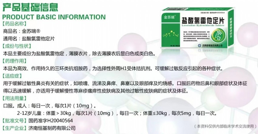 金蘇瑞®鹽酸氯雷他定片招商,抗過敏新藥,控銷禁掛網(wǎng),提供學(xué)術(shù)支持物料支持!