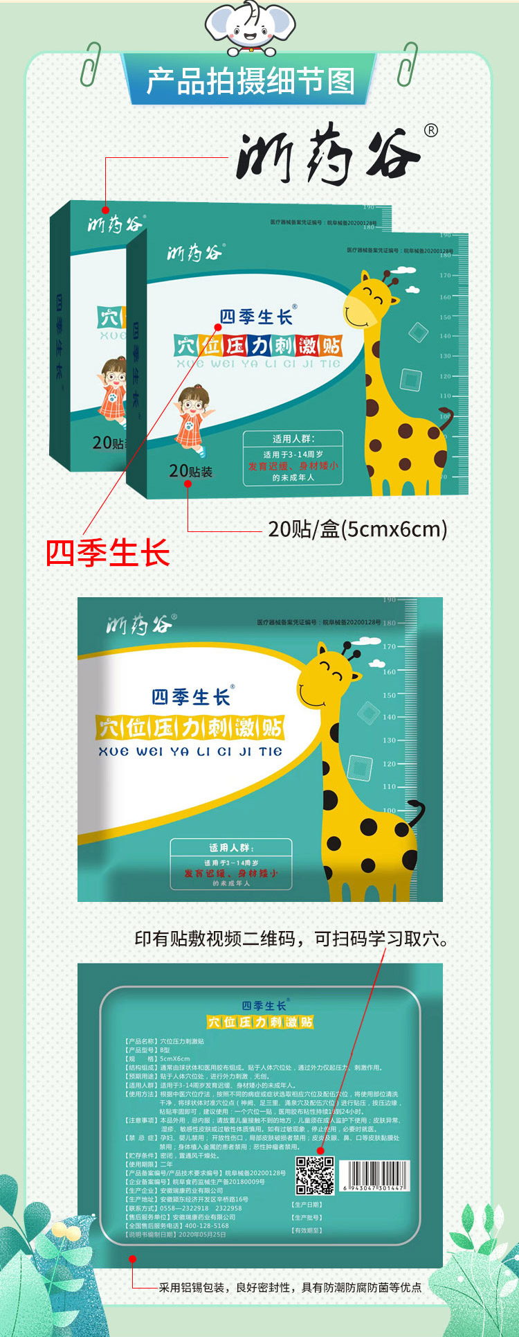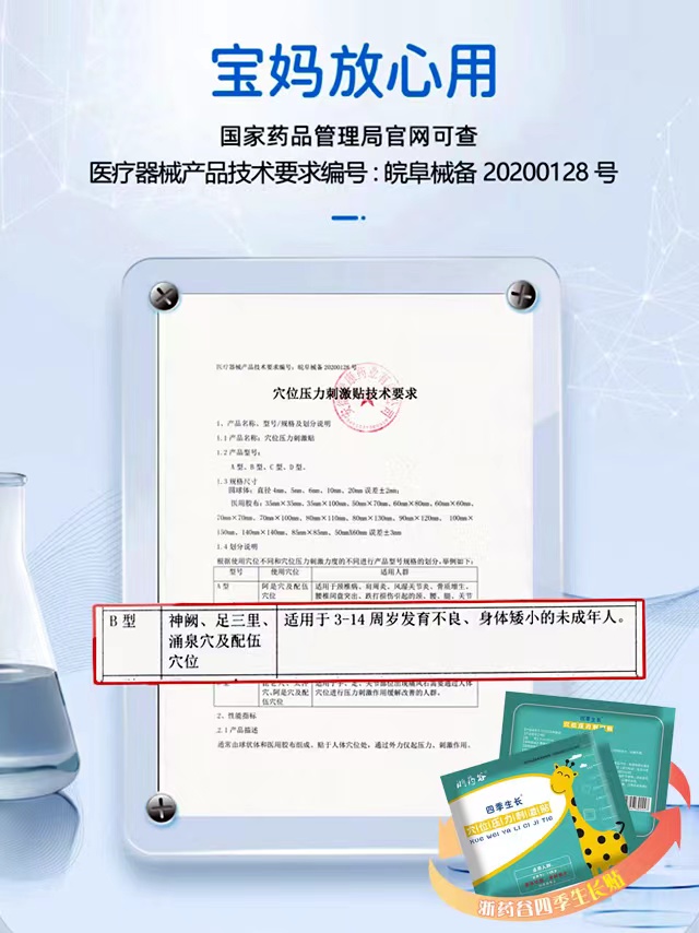 尤其是浙江浙藥谷藥業(yè)有限公司的四季生長-穴位壓力刺激貼,專門為促進兒童生長而研發(fā)生產的高品質產品。