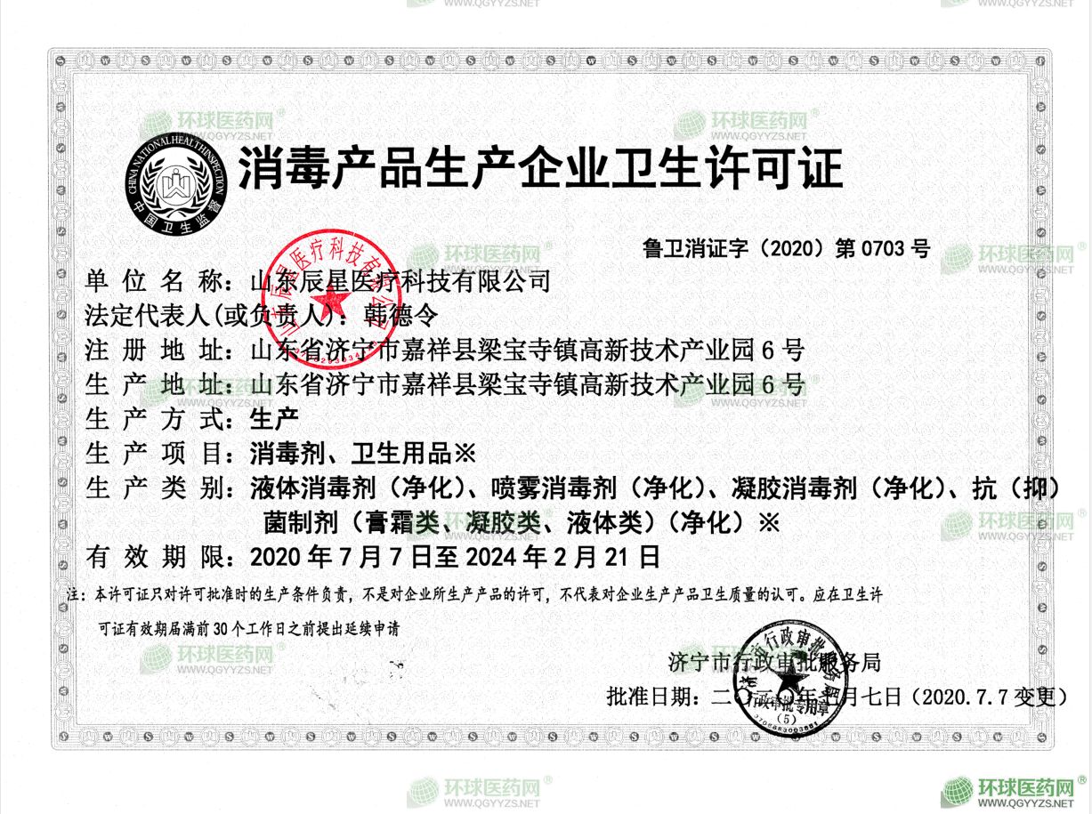 - 消毒產(chǎn)品生產(chǎn)企業(yè)衛(wèi)生許可證