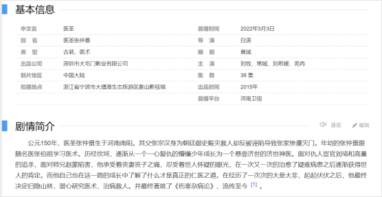 張仲景是河南南陽(yáng)人,是東漢末年我國(guó)偉大的醫(yī)學(xué)家,被尊稱為“醫(yī)圣”。近幾日,就有一部叫醫(yī)圣張仲景的電視劇正在熱播: