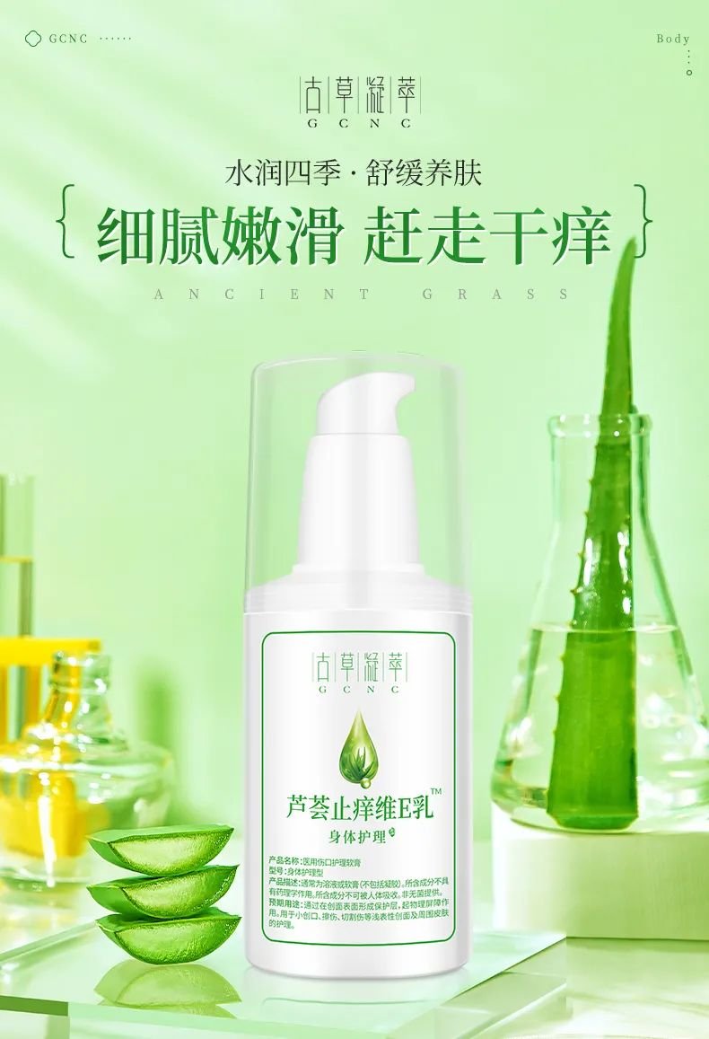 因此,崇尚健康自然之美的古草凝萃,現(xiàn)在推出了一款全新的蘆薈止癢維e乳,緩解冬季身體肌膚的干癢問題。
