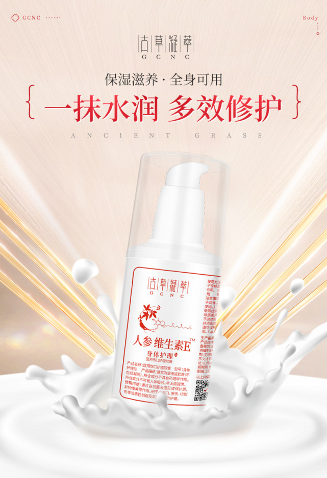 更重要的古草凝萃人參維e乳絕不含色素、酒精、香精等有害肌膚的成分,是少數(shù)真正能做到有害成分零添加的身體乳!并具多種天然成分溫和滋養(yǎng)修護受損干燥肌膚,多重呵護養(yǎng)膚,保濕滋潤!敏感肌可以完全放心使用!