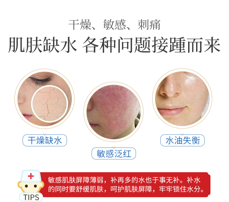 春季氣溫升高,肌膚皮脂腺分泌增多,但因春季雨少風多,環(huán)境干燥,皮膚很易出現(xiàn)缺水和水油不平衡的問題,亟需保濕修護。