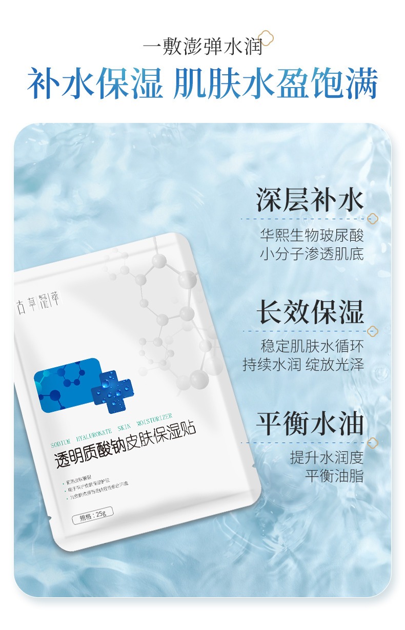 在護膚品的選擇上我建議大家“輕裝上陣”,成分精簡、帶有補水功效的面膜效果更好。透明質酸鈉保濕貼核心成分為科學復配的HA(玻尿酸),能更好地補充肌膚水分,解決肌膚屏障干燥受損問題。效果拔群,物超所值喲~