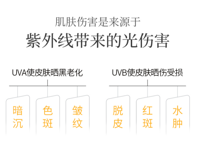 人的皮膚到了一定的階段,就會開始老化,造成皮膚老化的原因有兩個(gè),一個(gè)是“歲月的殺手”,這是我們眾所周知且不可控制的。第二個(gè)是“光老化”,這是我們可以采取一些手段去控制和預(yù)防的,那就是我們每天要做的防曬?梢姽庵械淖贤饩有對人的皮膚有兩個(gè)主要的危害,一個(gè)UVB是會使我們的皮膚曬傷受損,另一個(gè)UVA就是會讓我們的臉上長皺紋,使我們的皮膚失去彈性,流失膠原蛋白。