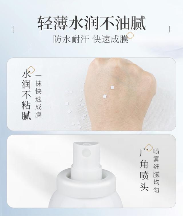 并且妝后補(bǔ)噴不僅不會脫妝,還能幫助定妝,用它噴完妝后T區(qū)出油情況都減少了。小編做了個(gè)防水測試,水在手上直接變成小水珠滑落了!
