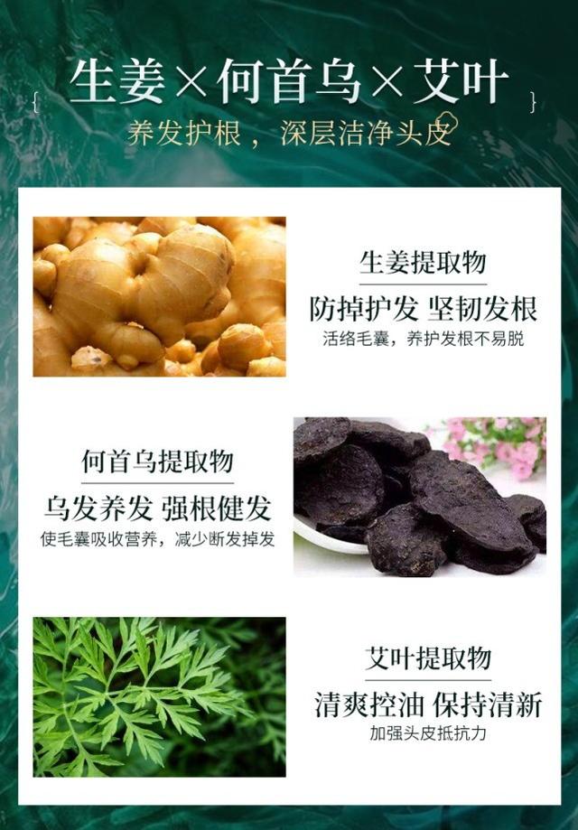1、生姜提取物:我們選取更純粹更滋養(yǎng)更濃醇的天然生姜,能活絡你頭皮的毛囊,起到防掉護發(fā)、堅韌發(fā)根的效用。